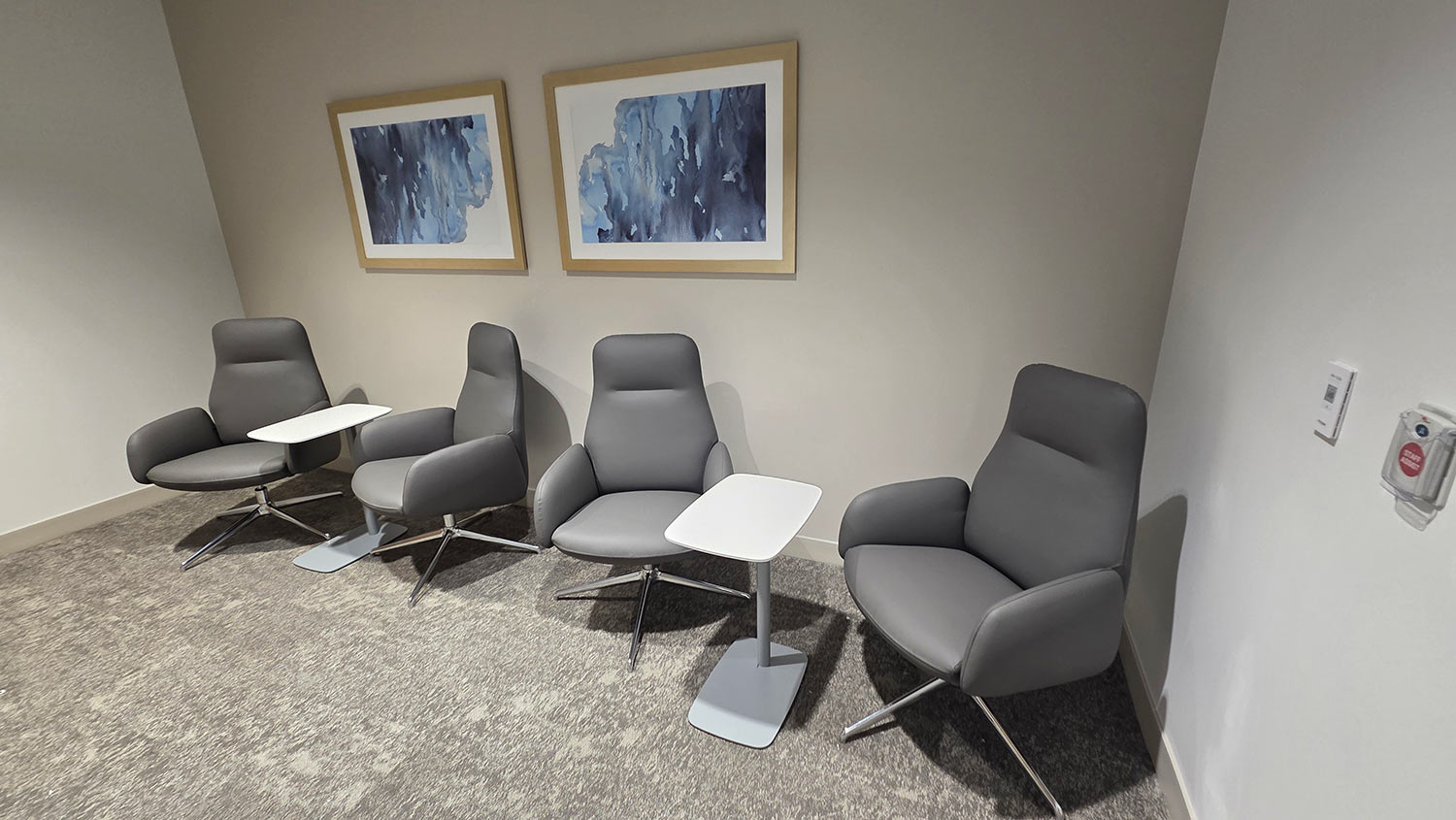 Amplify chairs by SitOnIt | Mika chairs by SitOnIt | Cama Glider by IOA | 30 Square lounger by IOA | Leo tables by IOA | Overbed tables by Medviron | Drum tables by Spec