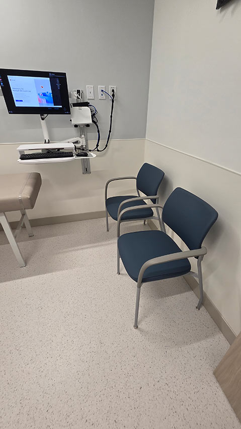 We are excited to share this recent patient room install at the new Moffitt Cancer Center at Moffitt McKinley Hospital. Shown here, working in harmony for both the patient and the patient’s family, are the Cama Recliner & Sleep Sofa by IOA and a Custom Overbed Table (featuring a built-in screen for handsfree use) by medViron.