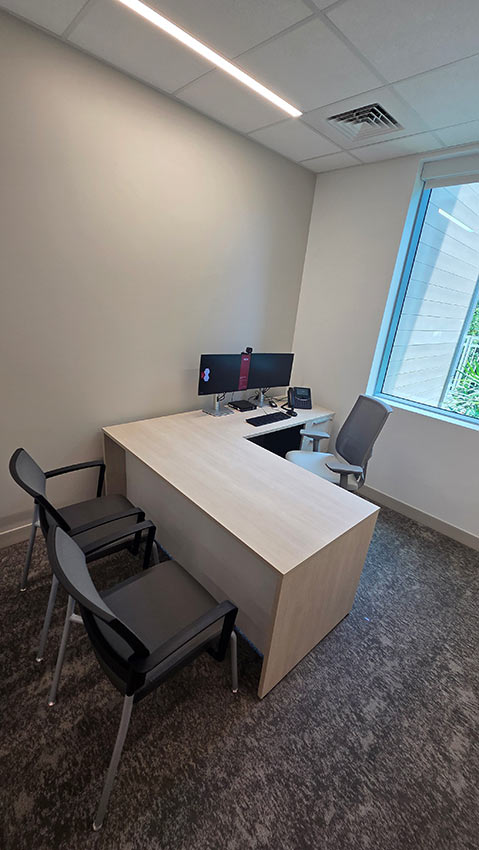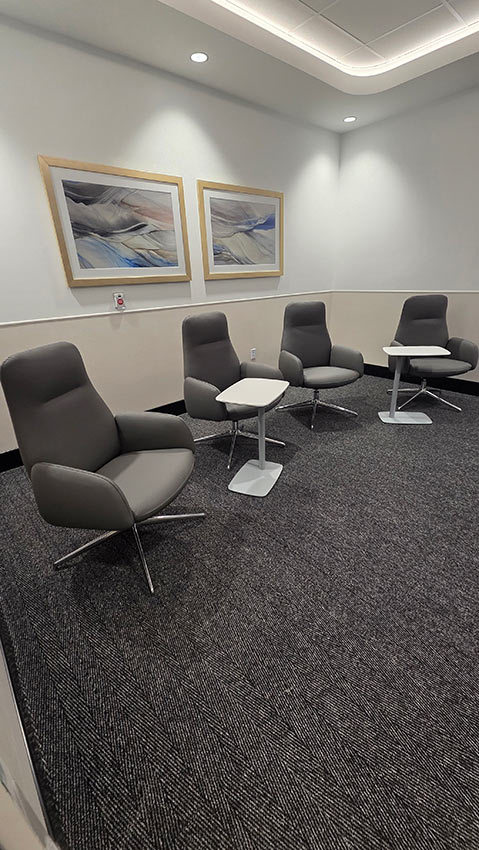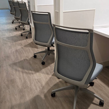 SitOnIt Aviera chairs were used in the waiting areas, and Wit chairs were selected for guest and conference seating.