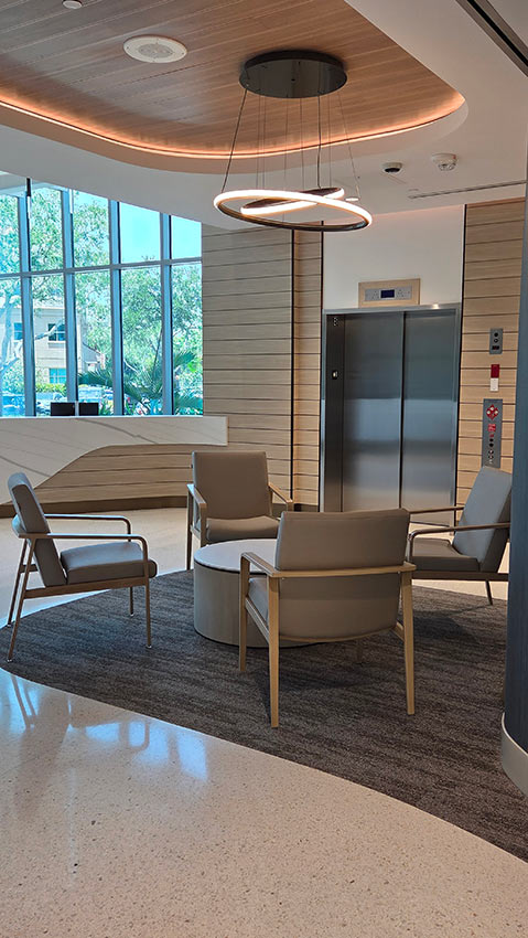 This new hospital wing at Memorial Healthcare System Hospital is designed with comfort, care, and functionality in mind for patients, families, and staff alike. This space was thoughtfully curated with the following pieces: